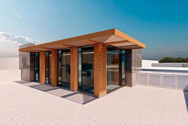 Además, se ha incorporado un elegante Roof Bar, que cuenta con acabados en madera, alucobond y cristal. Este elemento no solo aporta un estilo industrial a las fachadas, sino que también ofrece una vista impactante de la ciudad, convirtiéndose en un atractivo especial para la edificación.